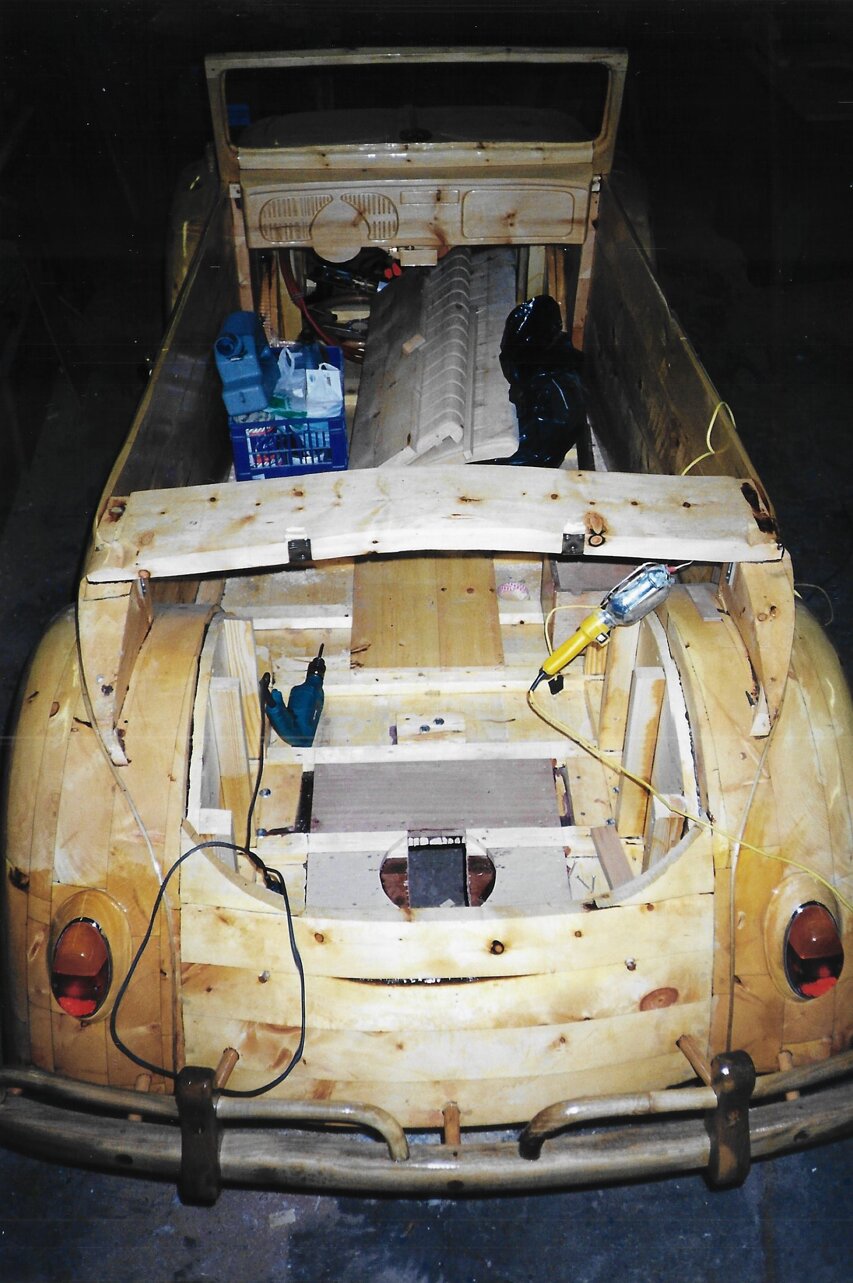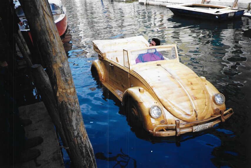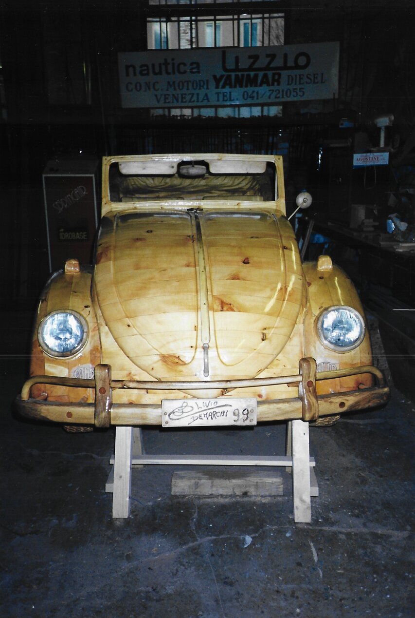 Allestimento meccanico ed elettrico di una "imbarcazione" a forma di Maggiolone Volkswagen creato dall' Artista Livio De Marchi. (Anno 1999)