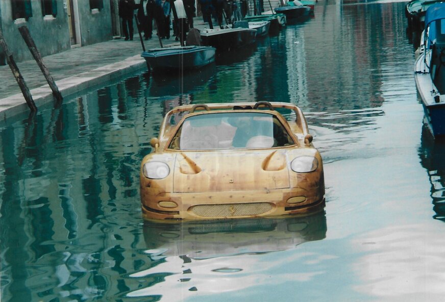 Allestimento meccanico ed elettrico di una "imbarcazione" a forma di Ferrari dell' Artista Livio De Marchi. (anno 2001)